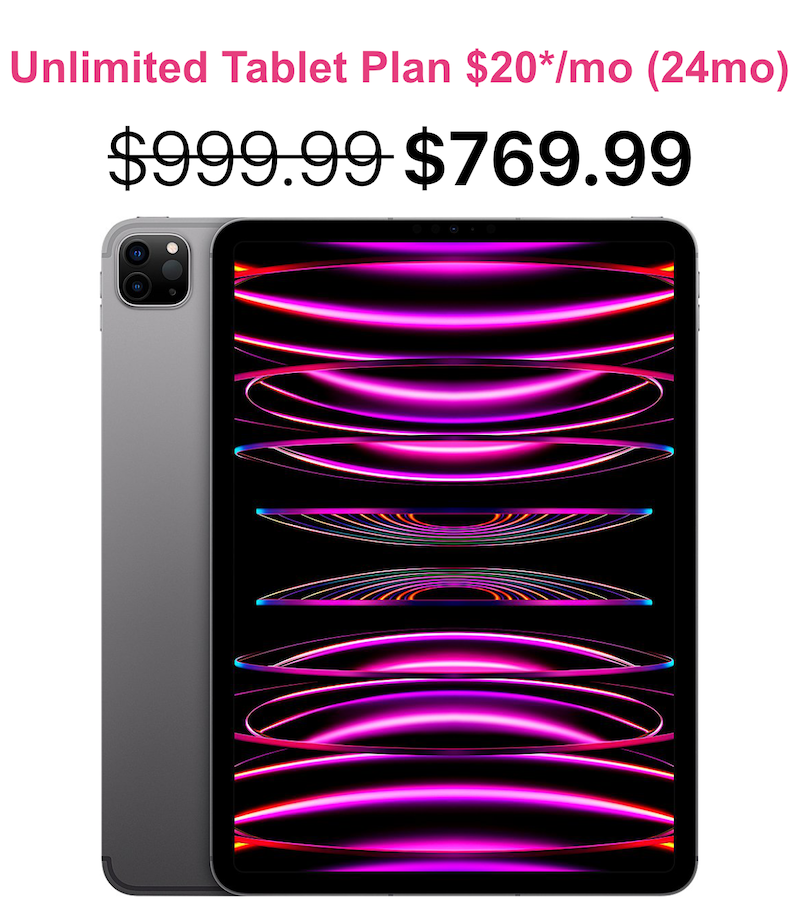 Get the 4th generation Apple iPad Pro 11" for $769.99 + $32.08 monthly with the $20 Business Unlimited Tablet plan.